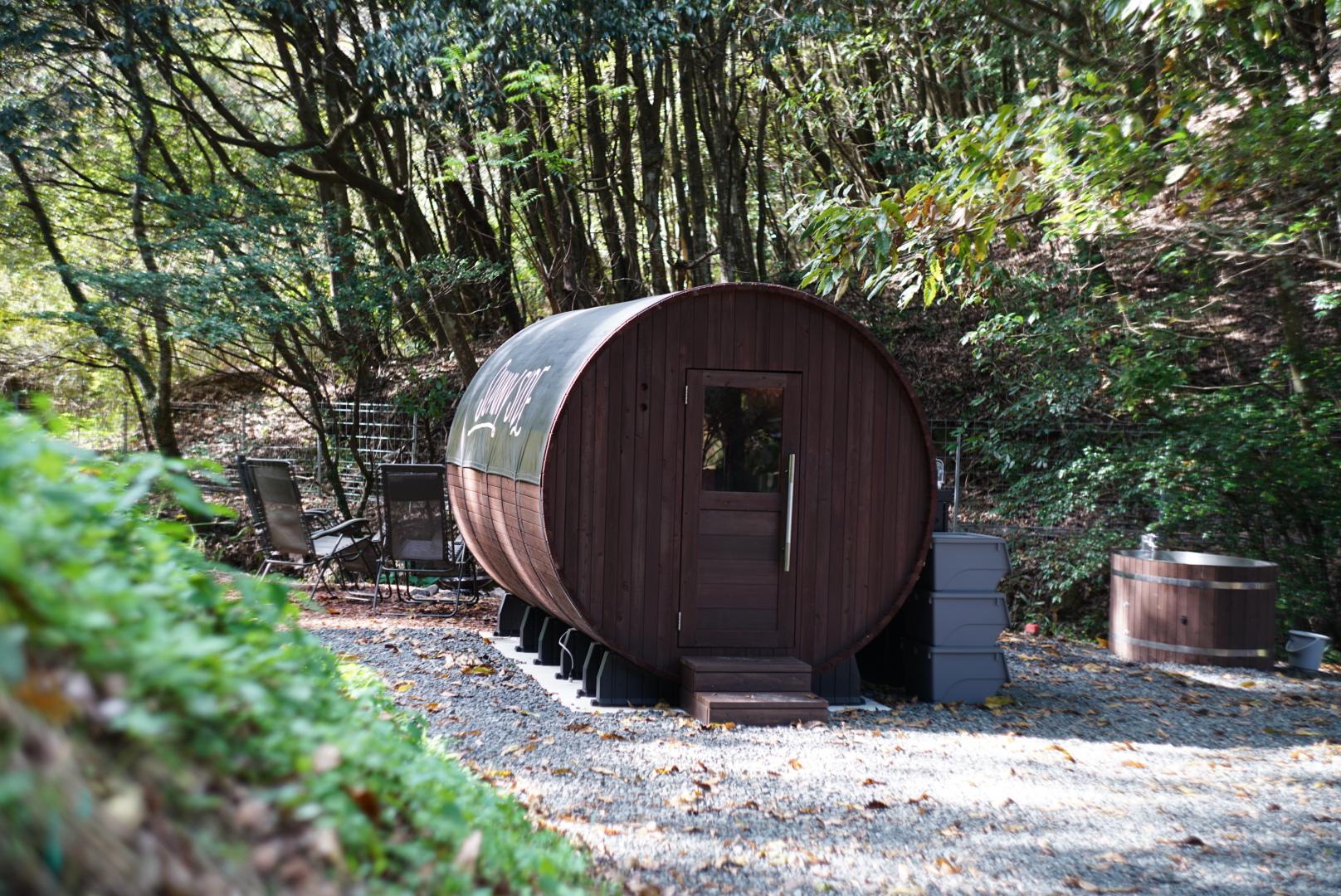 店舗前にはバレルサウナ
